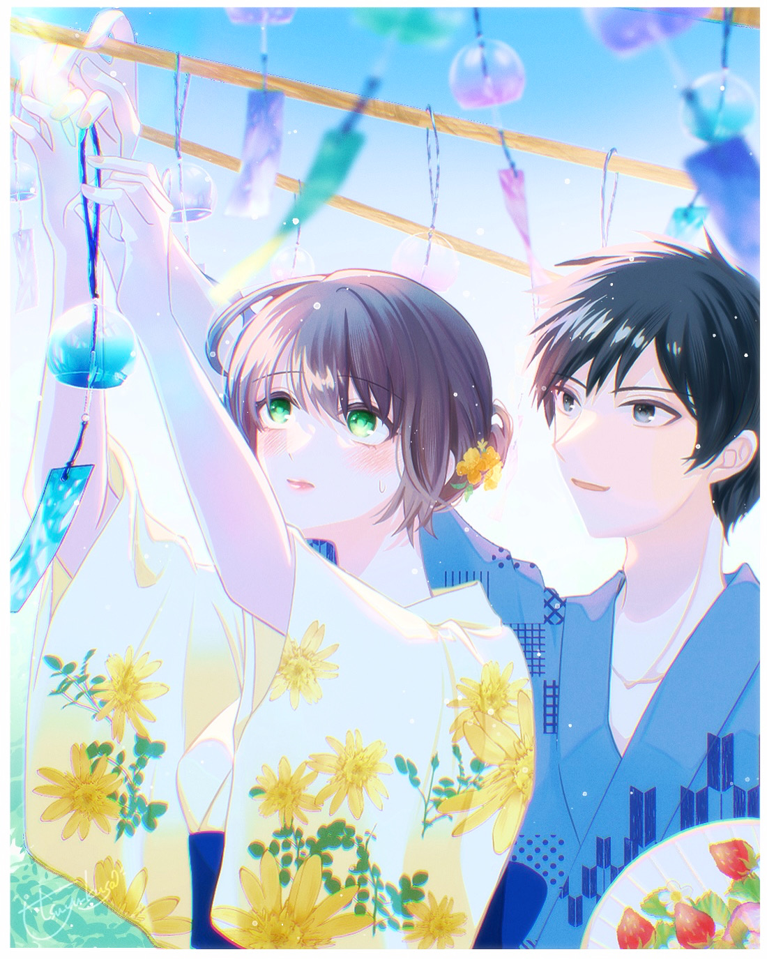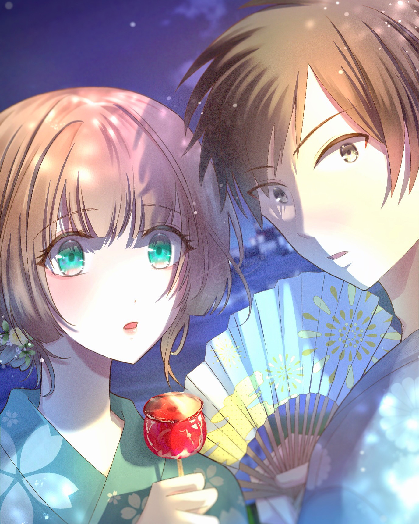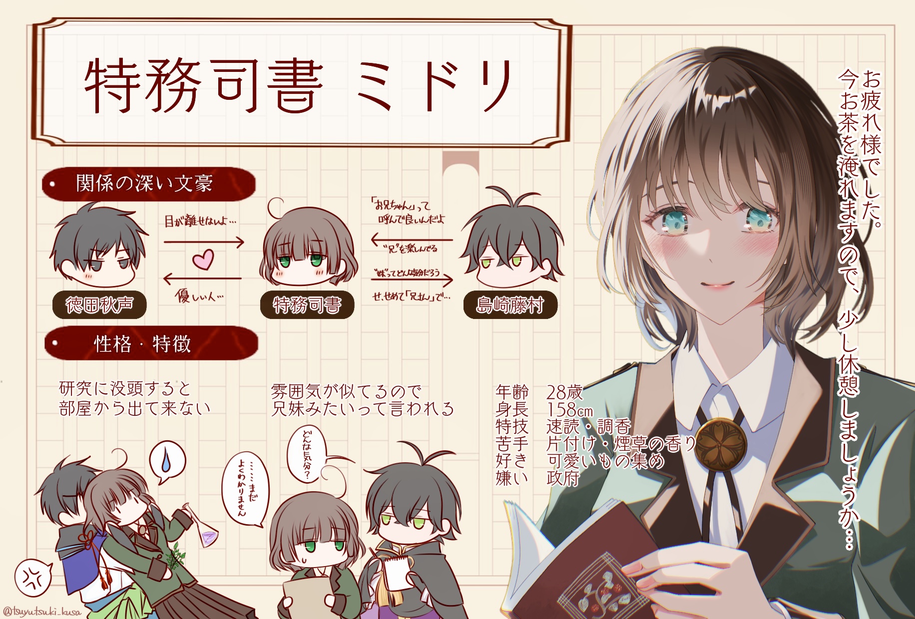 秋声くんと司書ミドリさんの甘めほのぼの恋模様を描いています。